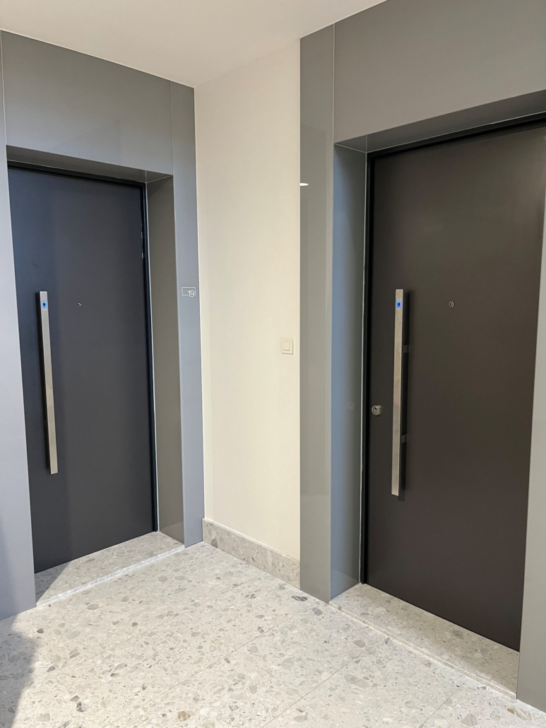 Ihr Design fügt sich perfekt in das architektonische Konzept des Projekts ein und ermöglicht gleichzeitig eine nahtlose Integration in intelligente Zugangssysteme.